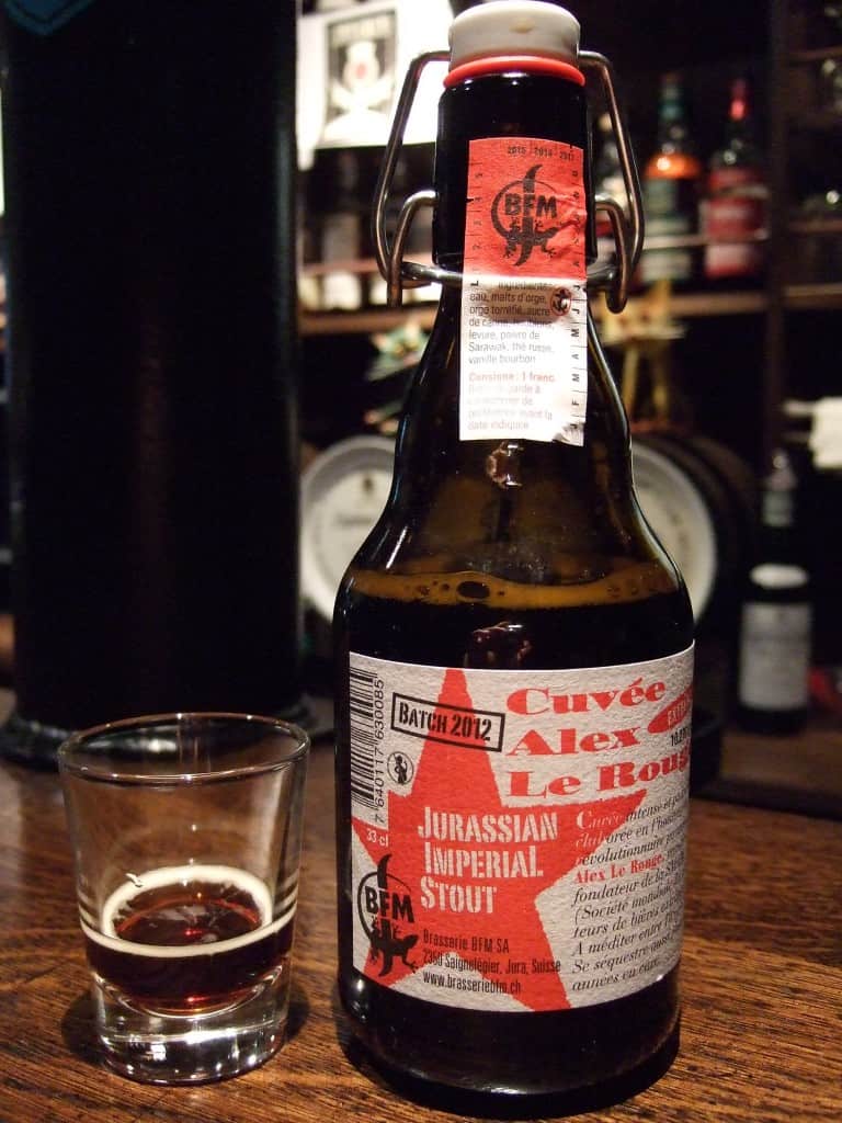 This is the first beer I’ve ever had from the French brewery, Brasserie BFM. Come to think about it, isn’t that also the name of a ladies undergarment? I’ll never understand the French language. One thing about the French though, they apparently know how to get smashed in new and interesting ways! Nothing about this brew was what I expected it to be, yet it ended up being an interesting, and wholly not too unpleasant a surprise. First, I saw the word “Rouge” which I assumed meant “red”. That along with the pop-top bottle I’ve seen on a handful of other fancy beers, made me think I was buying a Belgian sour-red. This stuff is about as far from that as you can go on the beer scale… it’s an Imperial stout. Yea, yea… I suppose I could have read that off the side of the bottle in the big red communist star… but I was two-and-a-half sheets to the wind that night having had about eight of the various drafts at the bar (doing research), and I wanted to snag a take-home six-pack. I didn’t read, so much as I just grabbed random bottles from the shelf. As a brain-smashingly 10.3% Imperial, it was hoppy like an IPA; and it was smooth totally not like an IPA. It had a mild taste for an Imperial and there was no bitterness or taste of alcohol that’s common in these high-proof beers. There are tastes of fruit as well in the beer, though nothing too overpowering. This is not a fruit-beer. Then there was the pepper. Yes, a distinct black-pepper taste with every sip, and granules at the bottom of the bottle. Another surprise, but not an unpleasant one, because it works really well with this brew. Overall, I’m impressed enough to get a few more bottles. Serve ice-cold in place of that sissy French wine along with Beef Bourguignon. Invite a mime over for kicks and see if you can get her smashed on this stuff.