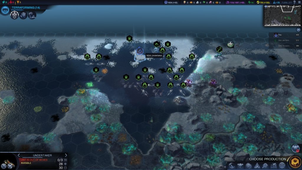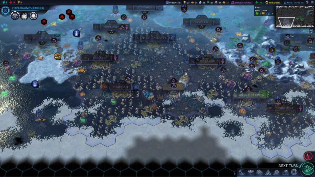 • Gameplay is of course good since at first glance it does look just like a reskin of the previous title.  It does add its own small flavors, such as being able to control if the trade routes will keep doing the same route or not by ticking it on and off.  Affinity is added, which changes not only the look of your troops but also their stats and what they are specialized in.  With the Rising Tide update there was a nice change which I was eagerly expecting which was to be able to make hybrids of the Affinity; albeit not all troops were able to be hybrids, to my sad discovery.  Affinity was a newly added feature that was divided into 3 categories later on having +3 sub categories (for the hybrids) in Rising Tide. Those being Harmony (alien and human DNA), Supremacy (robot and human DNA) and Purity (enhanced human DNA, purely human).  Another cool feature was cities on water, which I hoped for before the game came out, which comes with being able to ram units if you are moving the city on that tile.