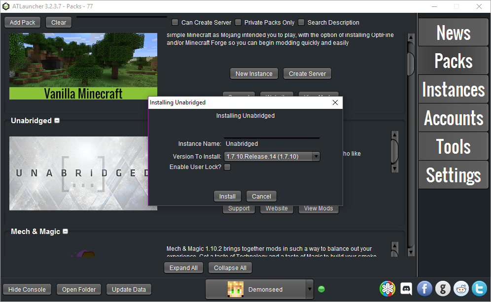 Oddysee runs a Minecraft server running the Unabridged modpack. I’m not going to lie, you need a halfway decent gaming PC to be able to run this mod-pack, but it’s rich with features and fun.